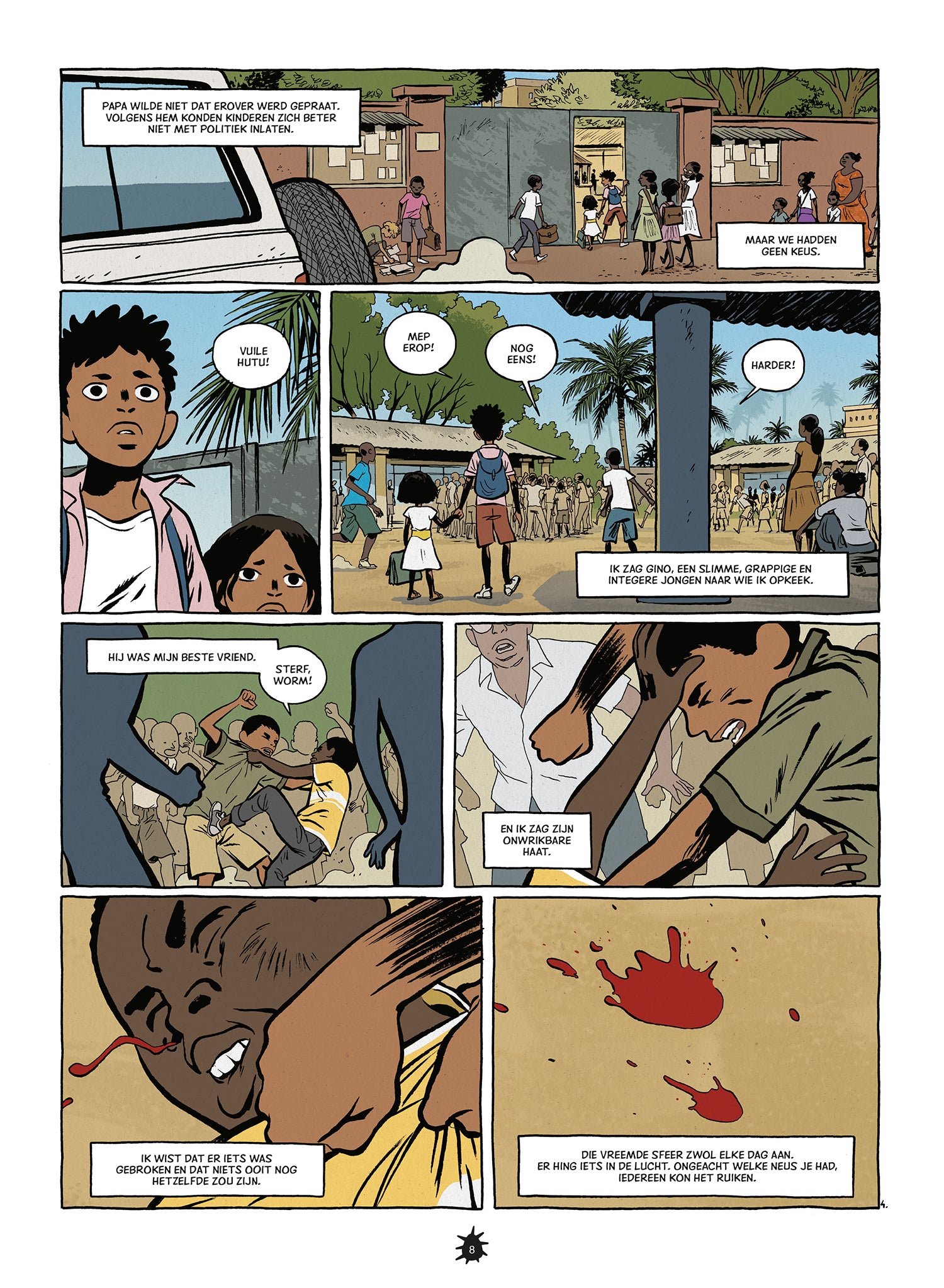 uit de Jura, hun moeder een Afrikaanse vrouw, een Tutsi uit Rwanda. Maar onschuld beschermt niemand wanneer het geweld plots overal losbarst. Binnen het gezin ontstaat een breuk tussen de ouders. Buiten klauwt de rassenhaat wild om zich heen. Aan de
