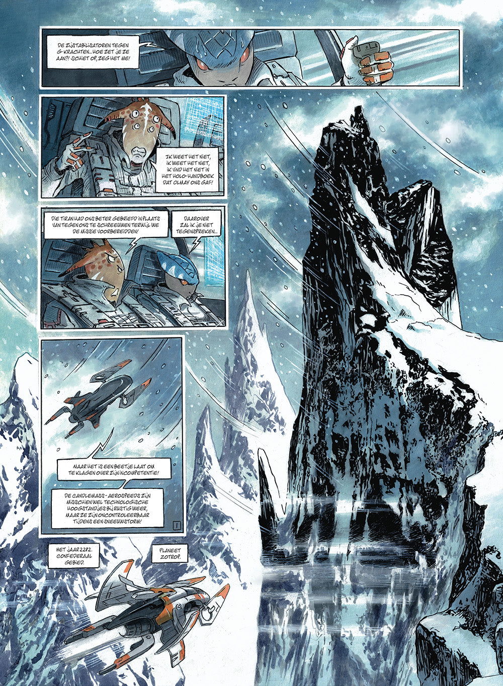 Kristina, Zachary en Olmay zijn erin geslaagd een lucratieve handel in aerospeeds op te zetten en staan aan het hoofd van een echte maffiaorganisatie genaamd De Drietand. Vastbesloten om wraak te nemen op onze helden, zullen Dadi Reggioni, Bardal en Aduz niet rusten voordat ze hen hebben gevonden. Op de planeet Drenn volgt kapitein Tetrana geleidelijk aan het spoor dat hen naar de bende van De Drietand en Reggioni en haar nieuwe handlangers zal leiden. Caleb geeft de hoop om zijn verdwenen zus terug te vinden nog steeds niet op. Een dramatisch slotdeel dat het lot van Kristina Swany uit de moederreeks “Orbital” zal bepalen. De voorbode...